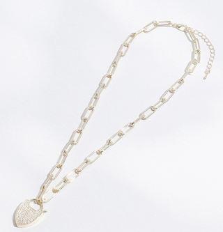 14.5" Clear Crystal and Gold Heart Lock Necklace