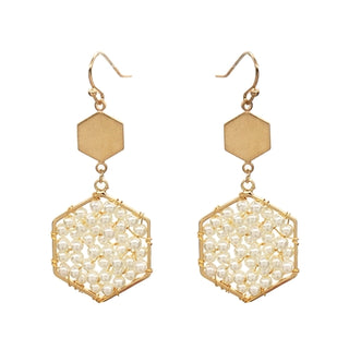 Pearl Wire Wrapped Hexagon Drop 2" Earrings