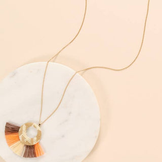 Rattan Raffia Fringe Long Necklace Orange